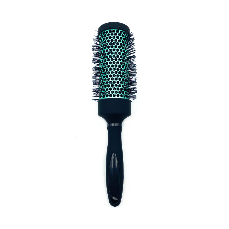 Escova redonda de cabelo estilo barril de alumínio cerâmico longo de marca própria personalizada para uso profissional em salão de beleza.